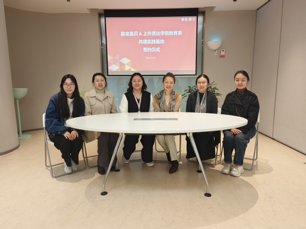另一重点共建单位——嘉宝嘉贝幼儿园,由学院副院长颜彦带队走访,院办主任李岩、教师负责人杨敔琛及辅导员吴丹丹共同参与调研洽谈。该园以课程主题化、艺术浸润、多语融合为特色,倡导项目制学习与STEAM教育理念,与学院生活美育、游戏化教学的培养方向高度契合。根据合作协议,双方将建立双导师共育机制,引导学生系统参与从保育辅助、课程助教到独立组织教学活动的分层递进式实践,助力学生实现“实习—就业”无缝衔接。
