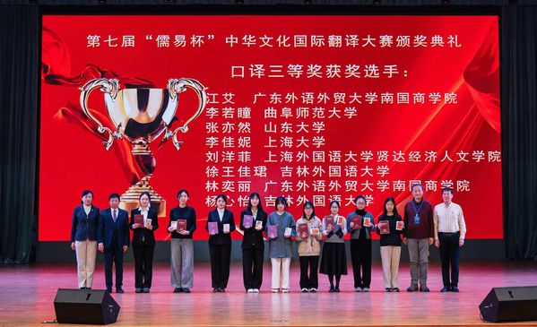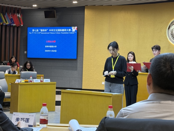 11月30日,第七届“儒易杯”中华文化国际翻译大赛全国口译总决赛在吉林外国语大学圆满落幕。我校外语学院23级翻译专业学子刘洋菲,在翻译系教师唐爱军的悉心指导下,凭借扎实过硬的专业功底与沉稳从容的临场表现,从全国突围的17名优秀选手中脱颖而出,最终斩获全国三等奖,为校争得荣誉。