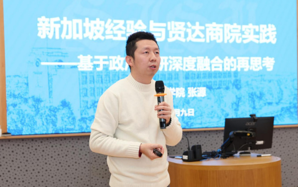 商学院黄益丹老师汇报了新加坡南洋理工大学教育管理硕士项目的研修成果。她以“融学于导·聚力育人”为主题,从学业精进、理论滋养与实践融合、未来展望三个维度展开分享。黄老师将留学期间所学的教育心理学、评估理论、创新教学方法创造性地应用于学生工作实践,打造了“‘青’心向党思政加油站”“十八而志·青春启航成人礼”等特色品牌活动,引入沉浸式情景教学法,将思政教育转化为视觉语言,真正做到了“以知促行、以行求知、知行合一”。