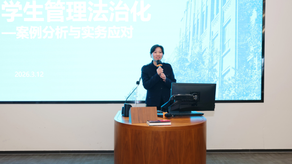 会上,校党委副书记郑虹作《学生管理法治化——案例分析与实务应对》专题讲座。讲座以案例剖析为抓手,结合工作实际拆解法治实践要点,帮助参会人员更直观掌握法治思维在学生工作中的应用方法。郑书记围绕一起典型学生财物丢失处置案例,引导与会人员深入反思学生管理人员在此类事件中的法定职责、行为边界与沟通规范,保障学生合法权利,防范工作中的法律风险。