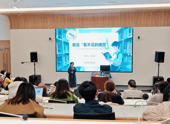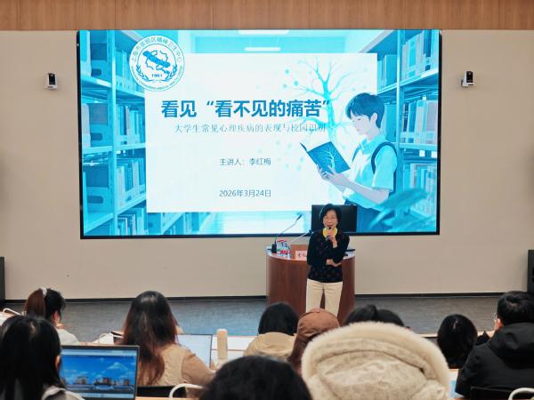 高校辅导员需要具备及时识别并妥善回应学生心理需求的能力。为此,2026年3月24日下午,心理健康辅导中心特邀请崇明区精神卫生中心副主任兼疾控精卫分中心主任李红梅,在国交楼312教室为我校教职工带来《看见“看不见的痛苦”——大学生常见心理疾病的表现与识别》专题讲座。全体辅导员、学生服务管理中心及综合运行保障中心相关人员参加了培训。