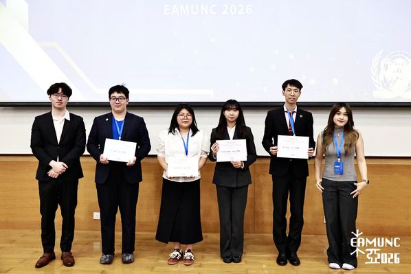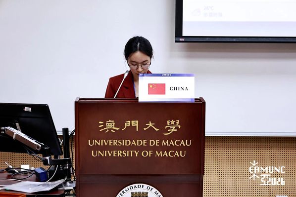 近日,2026年澳门大学东亚模拟联合国大会(East Asian Model United Nations Conference 2026)圆满落幕。在学生服务管理中心和教务处的大力支持下,外语学院2名指导教师带领6名学生代表应邀参会,在联合国教科文组织(UNESCO)委员会中表现出色,其中尼日利亚代表荣获“最佳发言奖”(Best Speech Award),展现了我校学子扎实的英语功底与出色的外交风采。